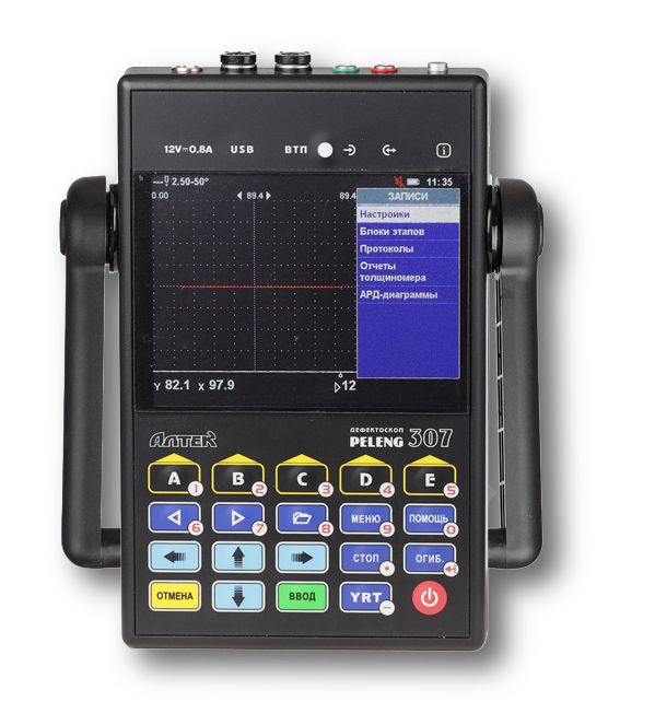 Ультразвуковой дефектоскоп УД3-307ВД (PELENG-307) имеет современный и компактный дизайн, что облегчает его использование и транспортировку. Он состоит из ультразвукового датчика, системы обработки сигналов, дисплея для визуализации результатов и оснащен множеством опций настройки для адаптации к различным видам контролируемых материалов.