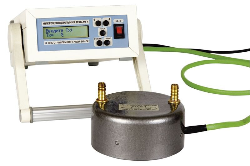 Микрохолодильник обеспечивает охлаждение участка поверхности контролируемого изделия до заданной температуры в любом положении: горизонтальном, вертикальном, наклонном, выдержку до 60 мин и автоматическое запоминание результата испытаний.